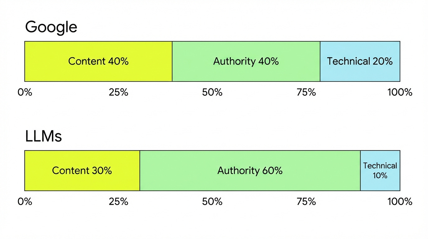 Translation: LLMs draw from the same pool of high-authority, well-structured content that Google already rewards.