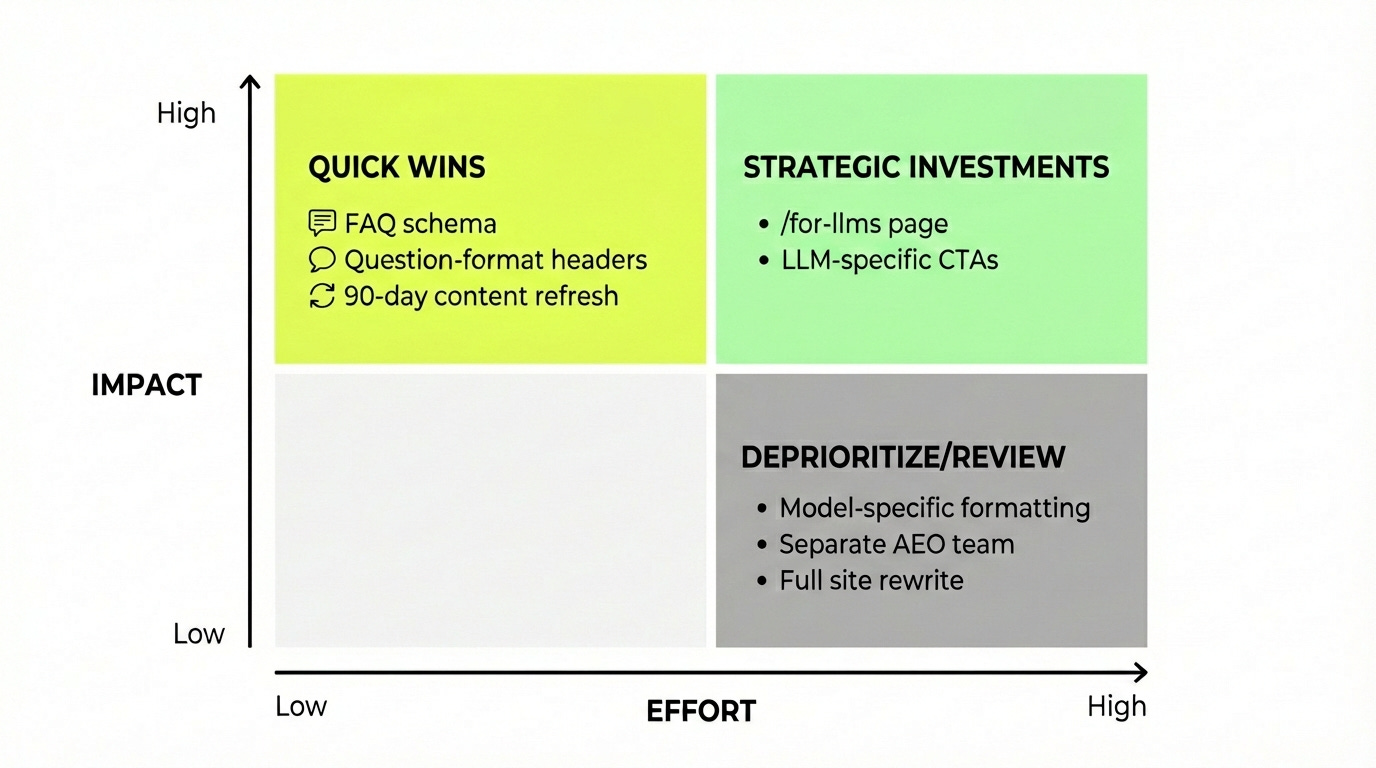 Add FAQ schema to high-traffic pages — Webflow tested this on 6 pages: +331 AI citations, +149K SEO impressions in 90 days.