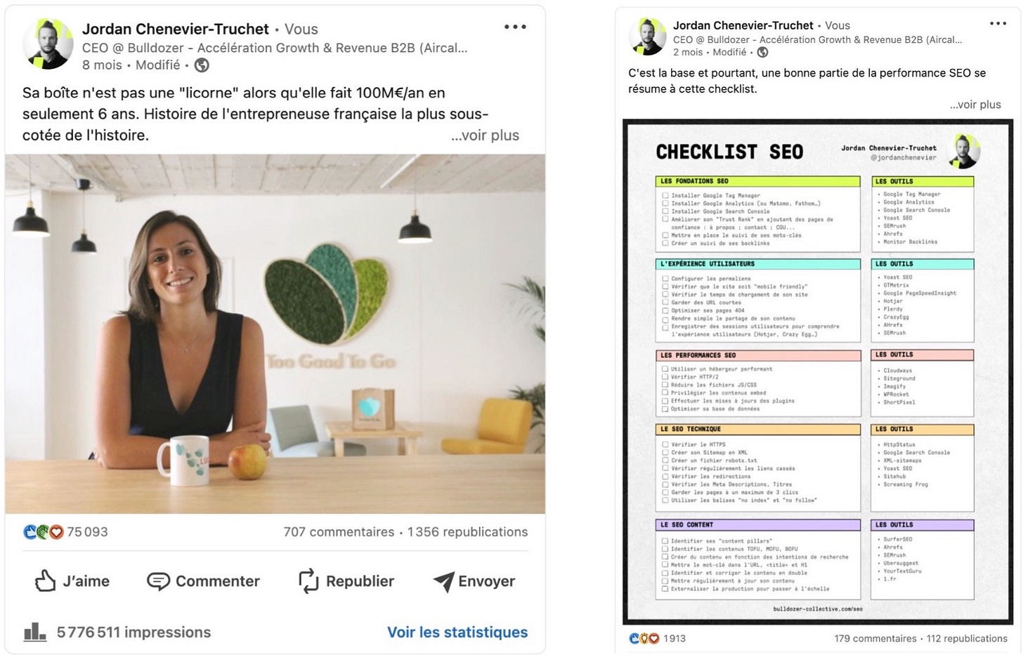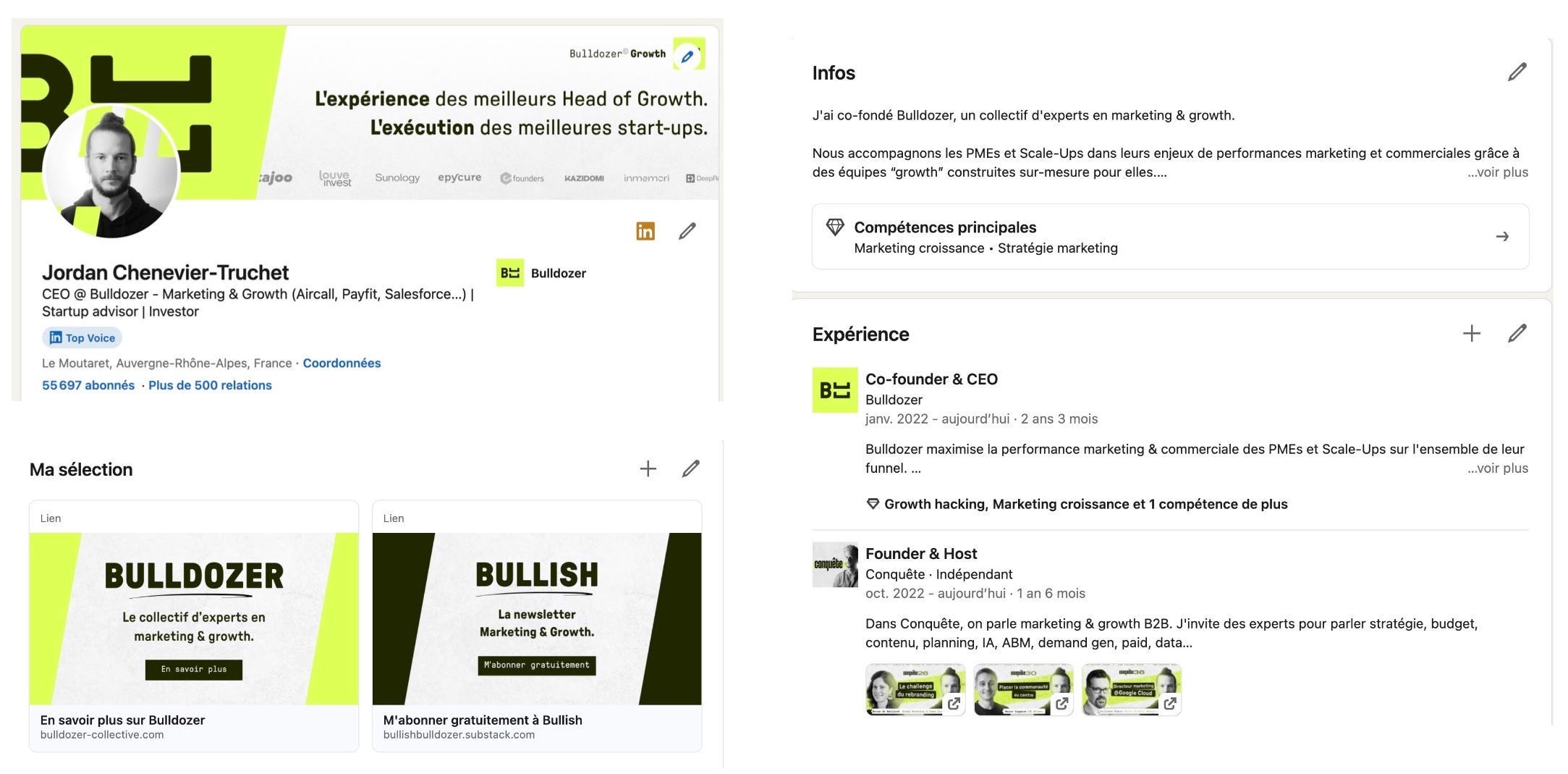 5M+ reach per year on average. My profile has been Bulldozer’s #1 acquisition channel in 2023, 2024, 2025 (≈500 leads) and generated 10M€+ in revenue in total.