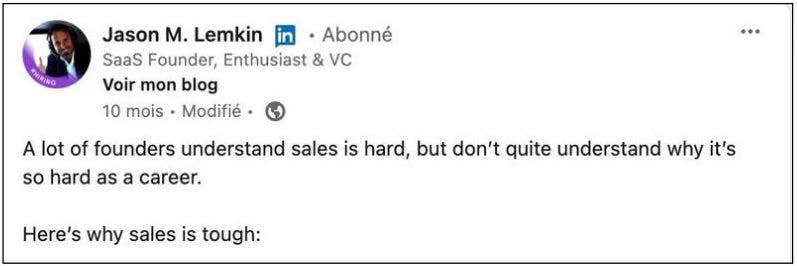 Leader. You position yourself as a “leader” on your topic and share insights others don’t have – data, contrarian opinions, methods... It’s the role everyone dreams of, but it’s the hardest to maintain (and not always the most interesting).