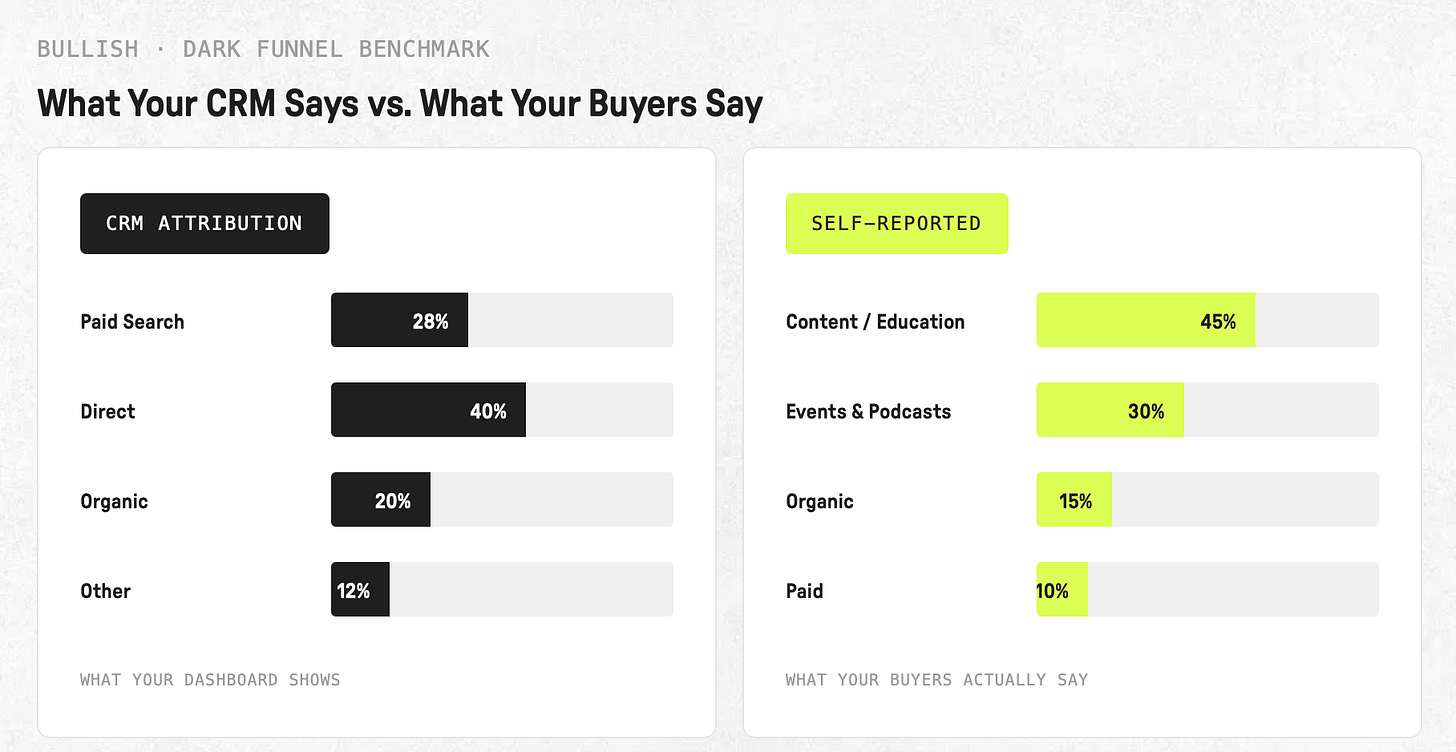Truth is, the dark funnel stopped being a measurement problem a while back; it’s now a behavior problem. Most of the 70% is now measurable — if you know where to look. The 72% number we’ll open with is where that starts.
